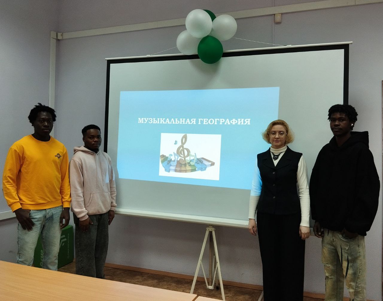 6 ноября 2025 г. доцентом кафедры бухгалтерского учета и финансов Кузнецовой О.Н. было проведено просветительско-досуговое мероприятие для иностранных студентов на тему: «Музыкальная география».
