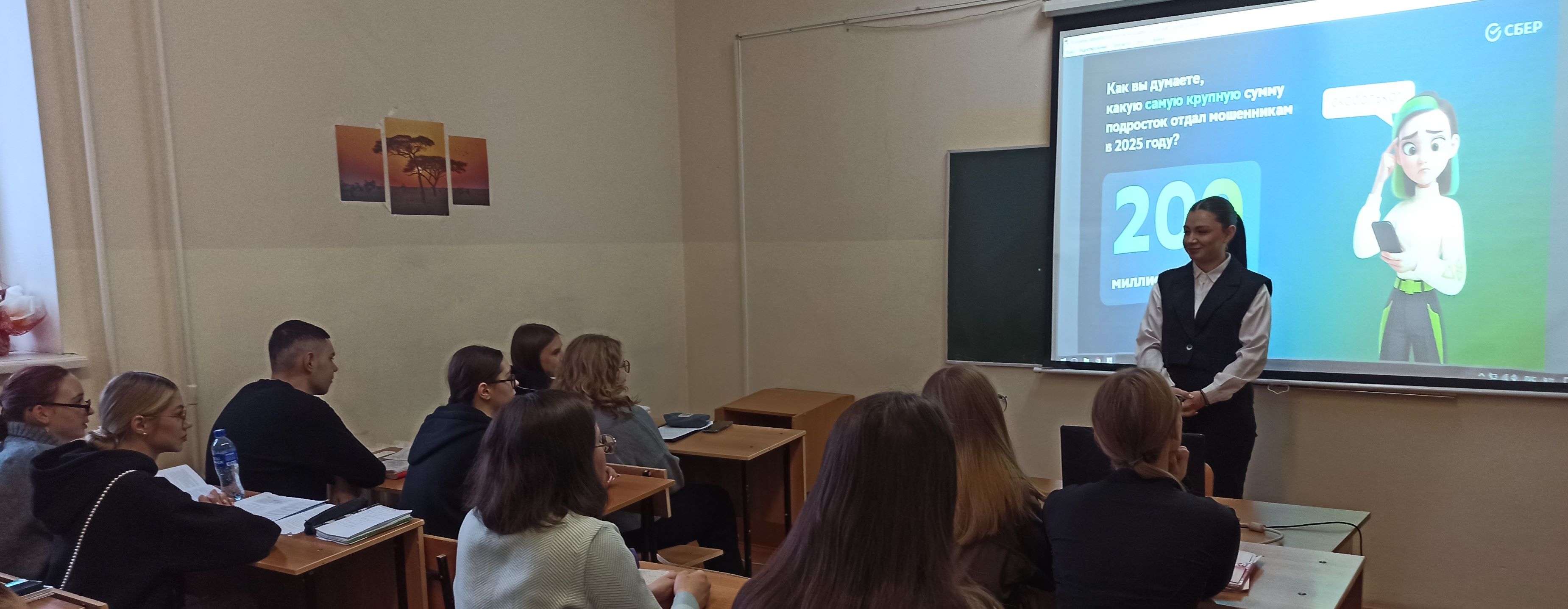 19 февраля 2026 г. менеджером по продаже зарплатных проектов ПАО «Сбербанк» Алисой Григорьевной Ромасюковой проведен для студентов 3 курса направления подготовки «Экономика» и специальности «Экономическая безопасность» мастер – класс на тему «Как обезопасить себя от кибермошенников».