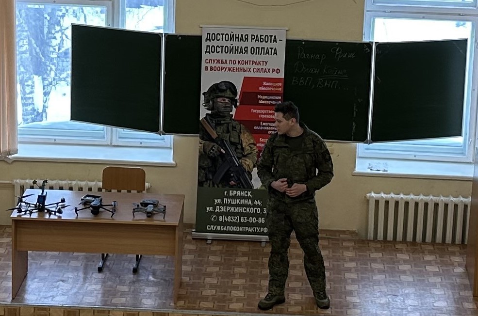 Представители военного комиссариата проинформировали обучающихся о возможностях прохождения военной службы по контракту в качестве специалистов беспилотных систем, о материальной поддержке и социальных выплатах, а также о возможностях карьерного роста в элитных войсках беспилотных систем Вооруженных Сил РФ.