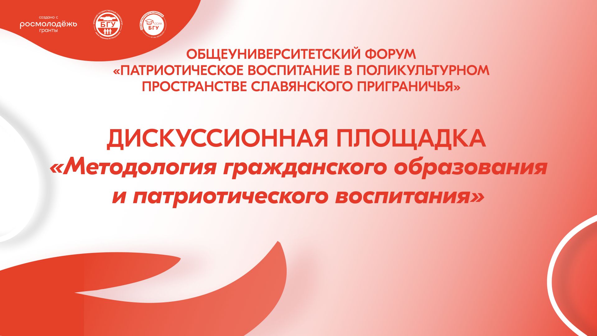 13 ноября 2025 года в нашем университете в рамках реализации комплексной программы развития молодежных инициатив и компетенций «Лига лидеров» при поддержке Росмолодёжь. Гранты состоялся общеуниверситетский форум «Патриотическое воспитание в поликультурном пространстве славянского приграничья». Организаторами форума выступили ректорат университета, Совет студентов и аспирантов БГУ, студенческий патриотический клуб БГУ и первичная профсоюзная организация студентов БГУ.