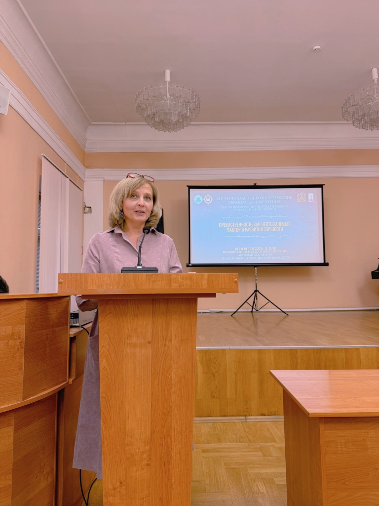 17 ноября 2025 года в Брянской областной научной универсальной библиотека им. Ф.И. Тютчева в рамках XXVI Региональных Рождественских образовательных чтений состоялась секция информационно-издательского отдела Брянской епархии «Преемственность как неотъемлемый фактор в развитии личности», на которой присутствовали студенты 1 курса филологического факультета направления подготовки 44.03.05 Педагогическое образование и доцент кафедры русского языка Печенкина Ольга Юрьевна.