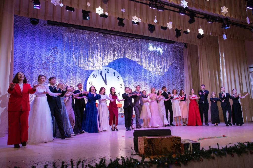 Актовый зал университета погрузился в атмосферу зимней сказки, где филологический факультет стал одной из ярчайших звёзд. По инициативе Студенческого совета факультета был создан хор, который представил залу трогательную музыкальную композицию «С Праздником вас!». Эта вдохновляющая мелодия окутала зрителей атмосферой волшебства, наполнив их сердца радостью и теплом. Каждая нота звучала как искреннее поздравление, а слова песни создавали неповторимое новогоднее настроение.