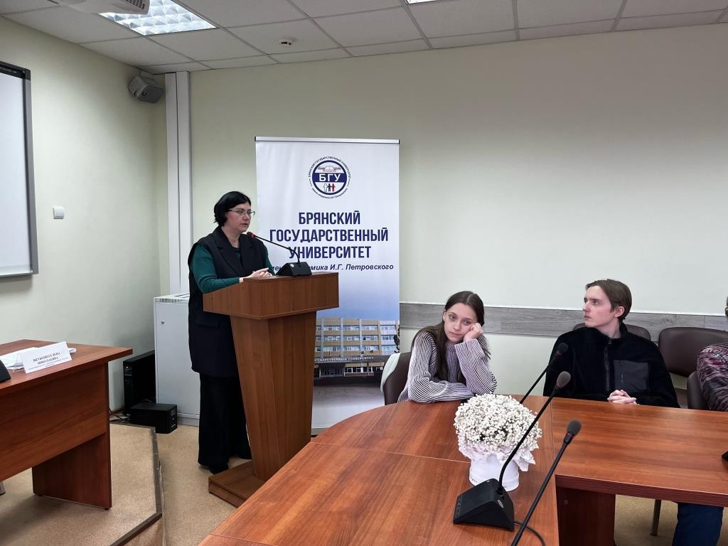 С исторической справкой выступила заместитель директора романо-германской филологии О.Н. Логутова. Она отметила, что освобождение Брянщины стало возможным благодаря совместным усилиям советских войск и партизанских отрядов, которые действовали на территории области.