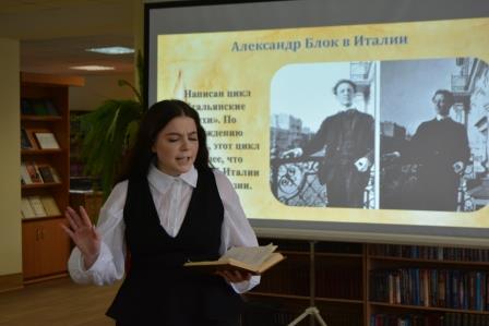 26 ноября в читальном зале университета состоялся поэтический вечер, посвящённый юбилею Александра Александровича Блока. Мероприятие собрало полный зал почитателей таланта великого поэта.