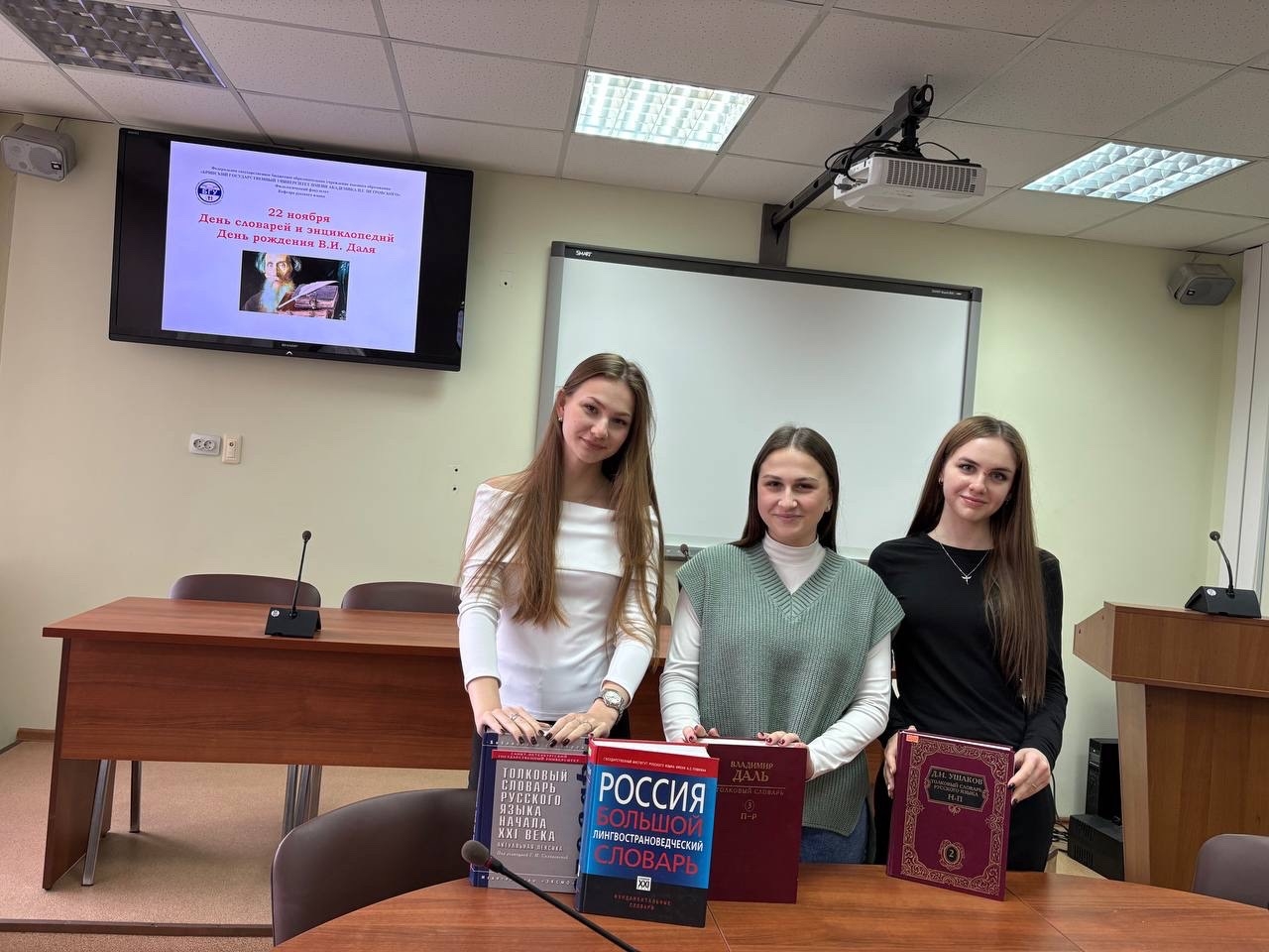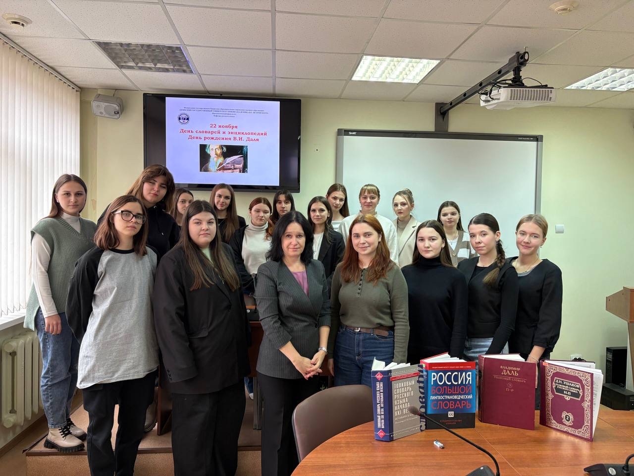 Заведующая кафедрой русского языка доцент Трошина Наталья Викторовна рассказала участникам мероприятия о богатом словарном фонде отечественной лексикографии, перечне нормативных словарей, фиксирующих нормы современного русского литературного языка при его использовании в качестве государственного языка Российской Федерации. Студенты обсудили новые типы словарной литературы, современные цифровые лексикографические проекты.