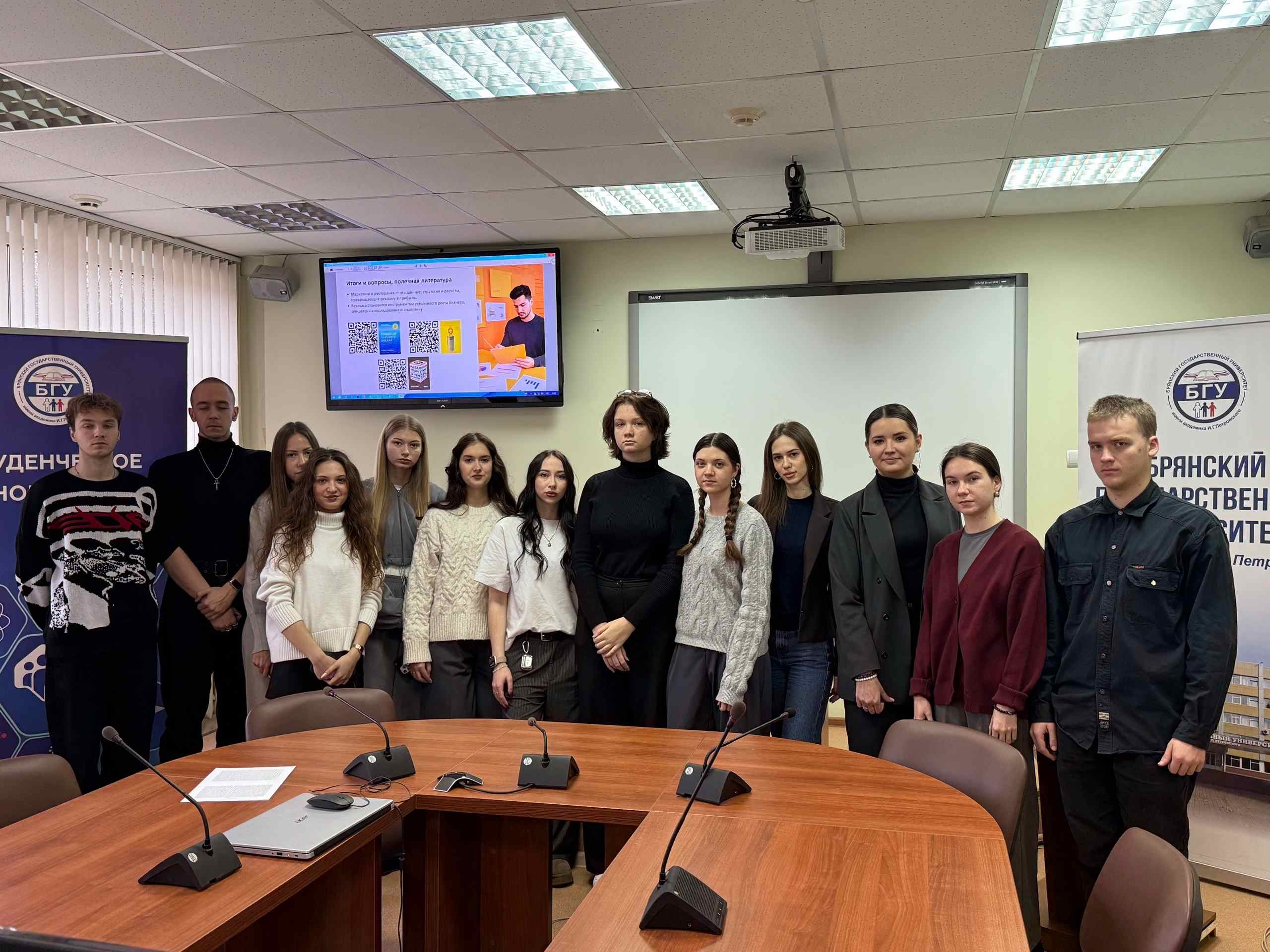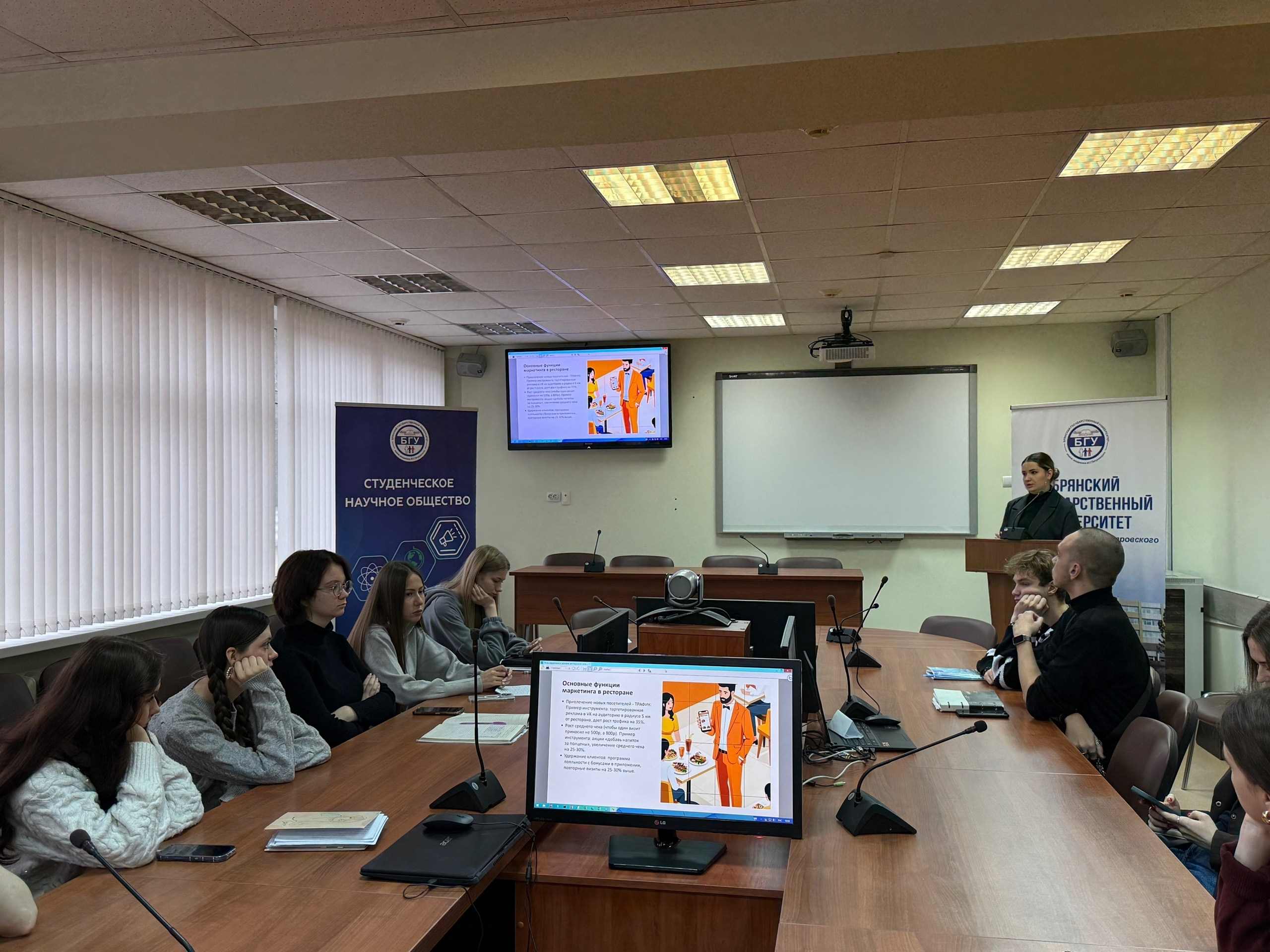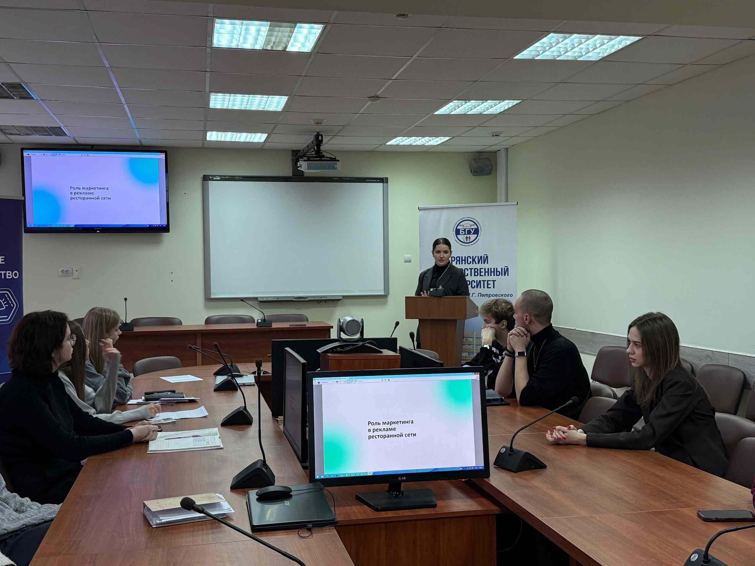 Для студентов 1-2 курсов направлений подготовки «Реклама и связи с общественностью» был проведен мастер-класс на тему «Роль маркетинга в рекламе ресторанной сети». Модератором выступила выпускник специальности «Реклама», ныне руководитель отдела маркетинга ООО «Аппетит» Тужикова Валерия Олеговна.