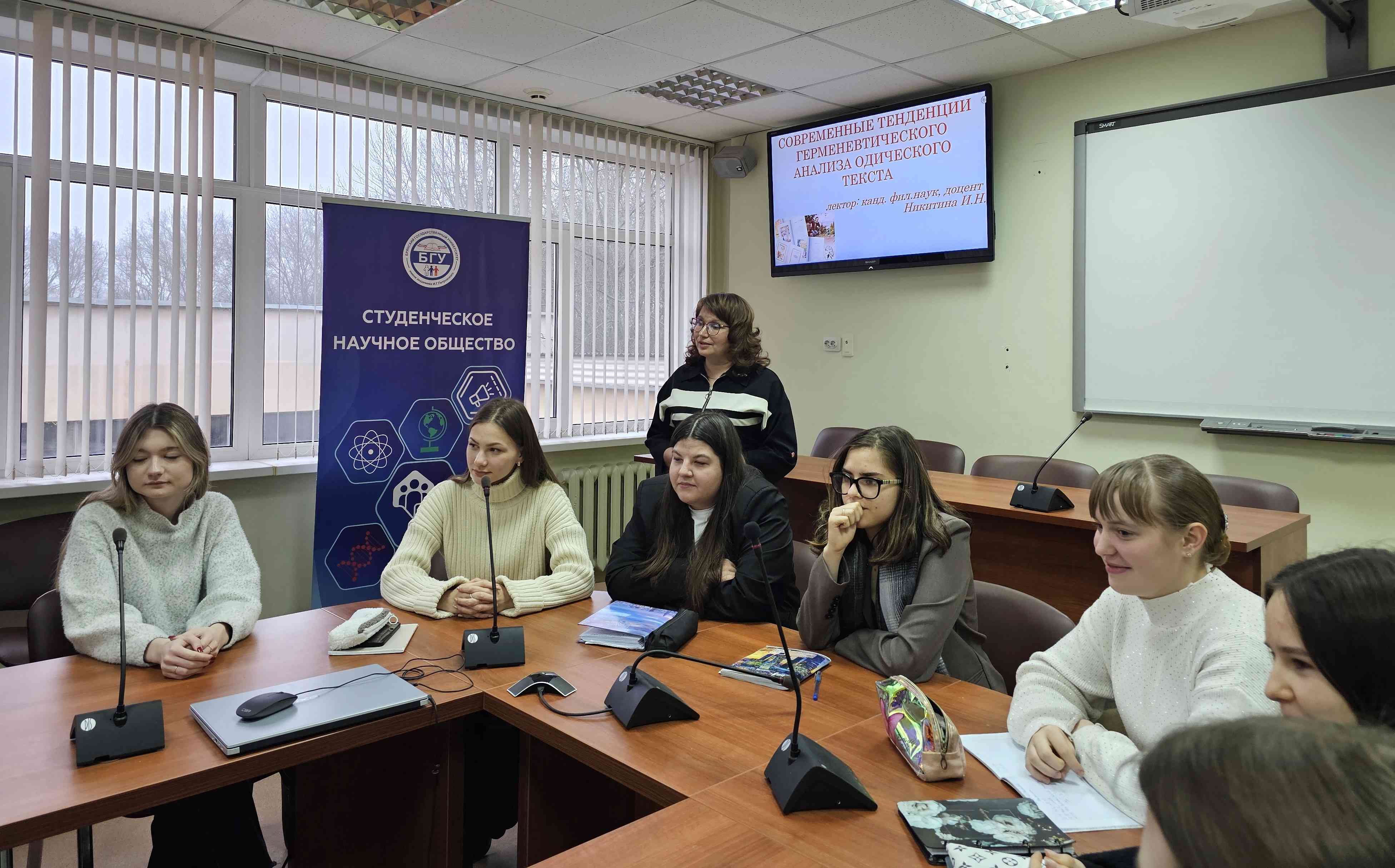 В ходе мероприятия студенты отметили, что В.В. Виноградов был не только талантливым ученым, но и организатором науки. Он возглавлял Институт русского языка АН СССР, где под его руководством проводились важные исследования, был основоположником крупнейшей научной школы в языкознании. Ученый активно участвовал в популяризации науки, читая лекции и публикуя статьи для широкой аудитории. Работы В.В. Виноградова переведены на многие языки и изучаются в университетах по всему миру.