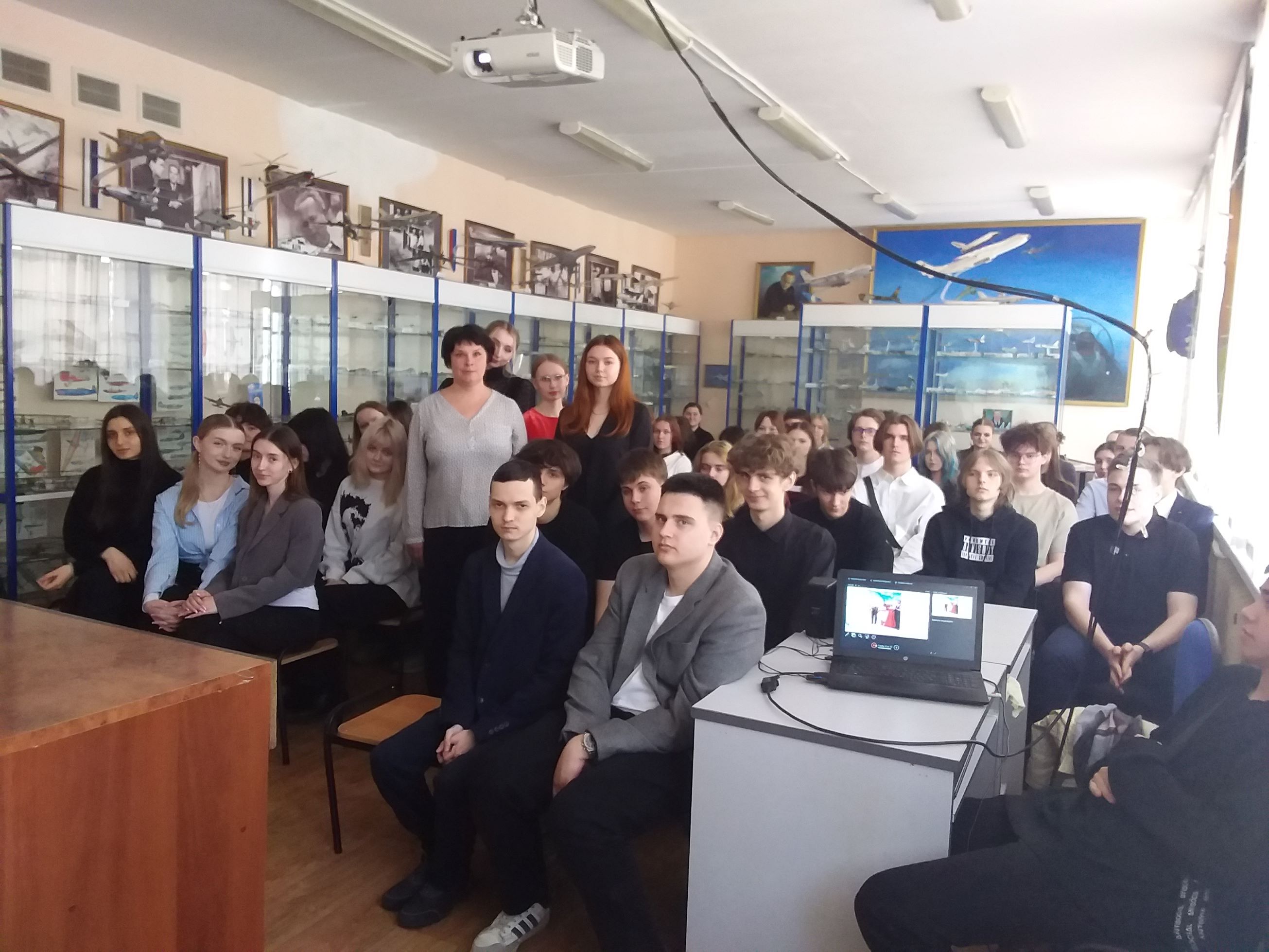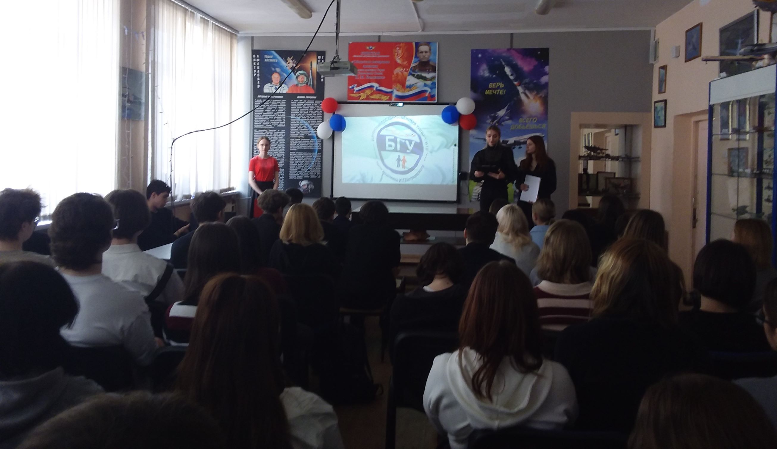 19 марта в Музее авиации при МБОУ «СОШ № 11» г. Брянска под руководством доцента кафедры русского языка Т.А. Распоповой студенты 4 курса Гришанова А., Андреева А., Тюкаева М., Коршикова В. и Юрченко Д. провели профориентационное мероприятие с учениками 10-11 классов. Студенты интересно и увлекательно рассказали о факультетах, направлениях подготовки специалистов в нашем университете, преподавателях, научной деятельности, яркой и насыщенной студенческой жизни.