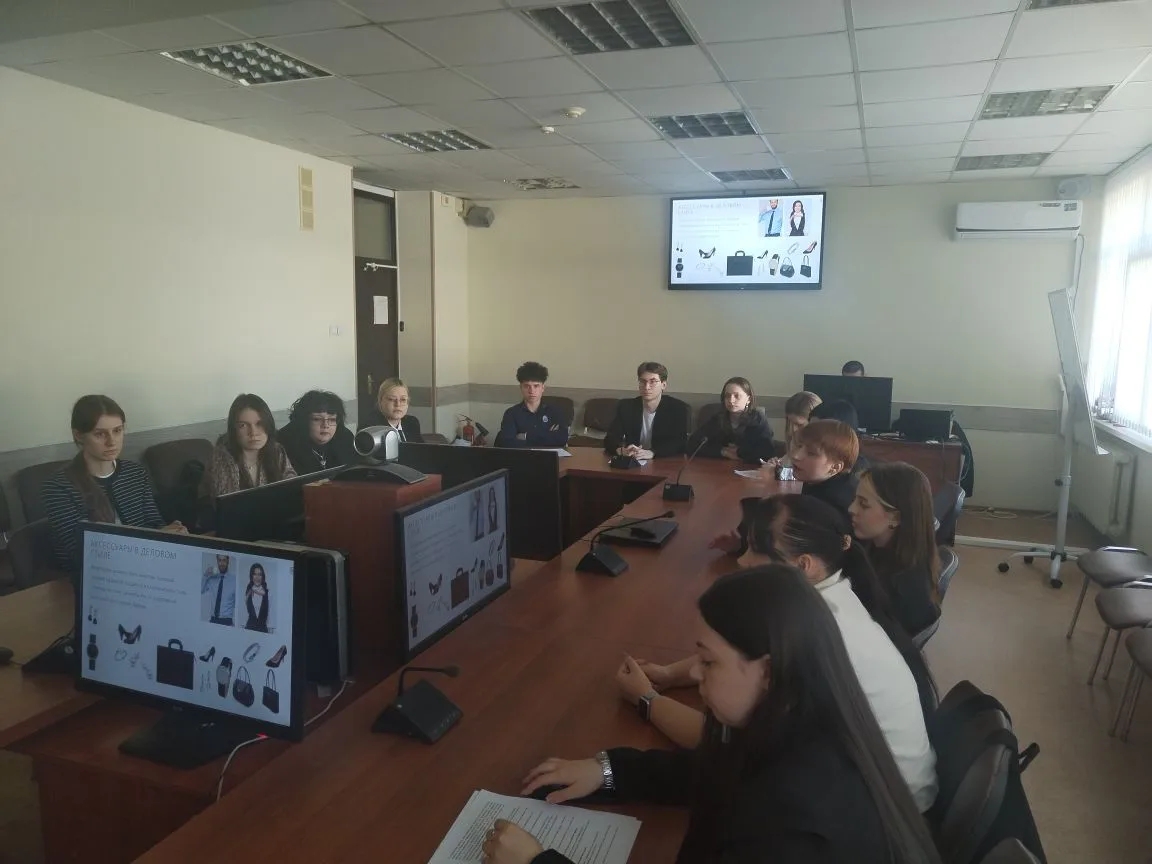 Основные принципы делового стиля представила Визнюк О. Студенты узнали о трех базовых составляющих грамотного гардероба: уместность, качество и аккуратность. Выступающая акцентировала внимание на цветовых решениях, а также перечислила элементы, недопустимые в классическом деловом стиле. Отдельный блок был посвящен аксессуарам и правилам их сочетания и подбора.