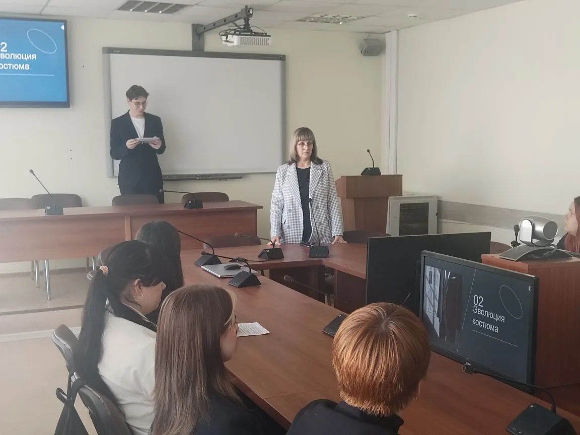 Программа кураторского часа включала несколько содержательных блоков, подготовленных самими первокурсниками. Студент Павлов Н. погрузил аудиторию в историю делового стиля — от европейской аристократии XVII века, когда строгие правила одежды зарождались при дворах Франции и Англии, до современного формата smart casual. Отдельное внимание было уделено эволюции костюма в XX веке.