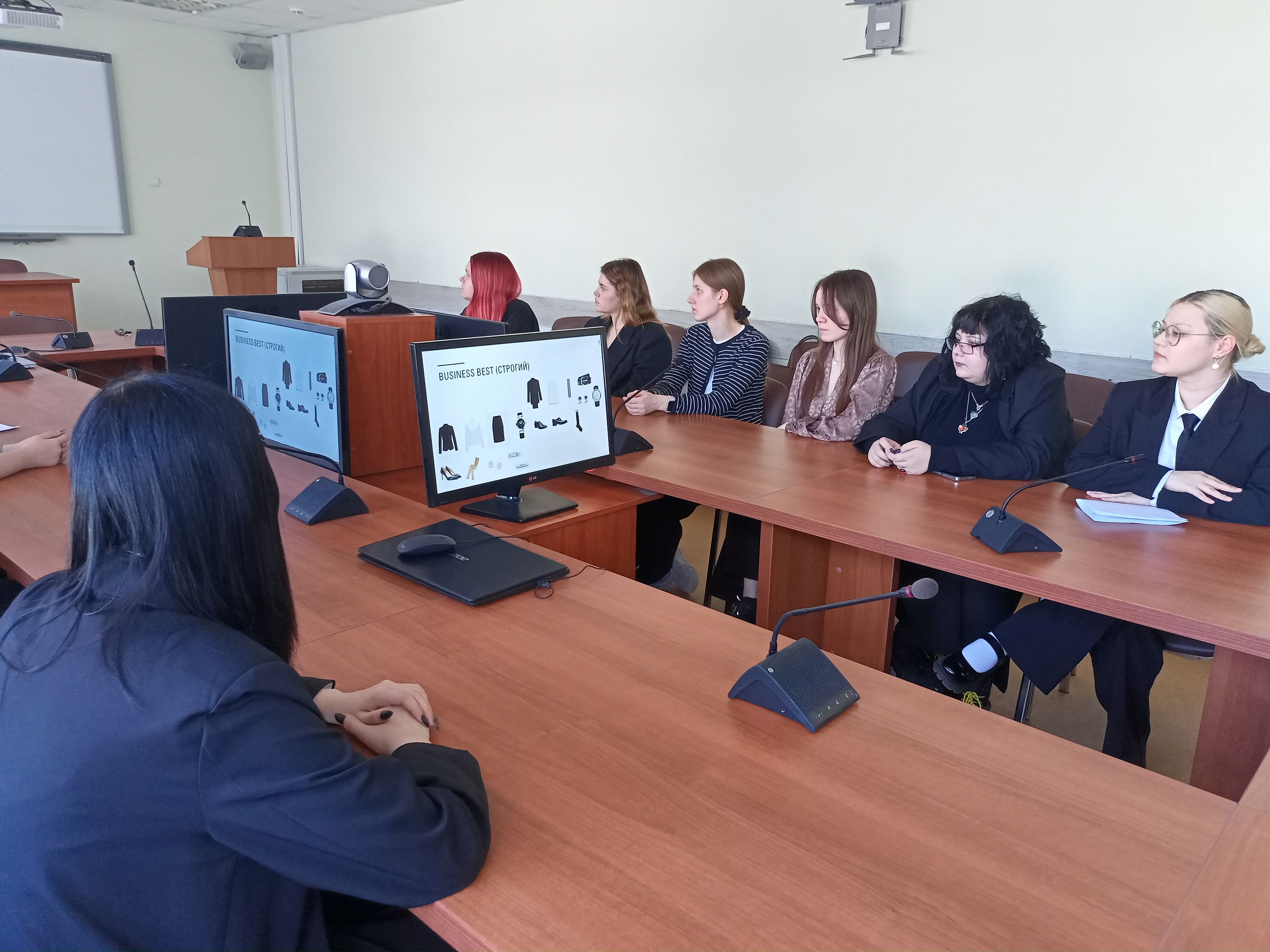 Мишина С., Щепанова П. и Бураков И. посвятили свое выступление уровням дресс-кода, а также психологии делового стиля, рассказав о том, как именно одежда становится инструментом невербальной коммуникации, способствующим созданию образа, который напрямую влияет на уровень доверия и готовность к сотрудничеству.