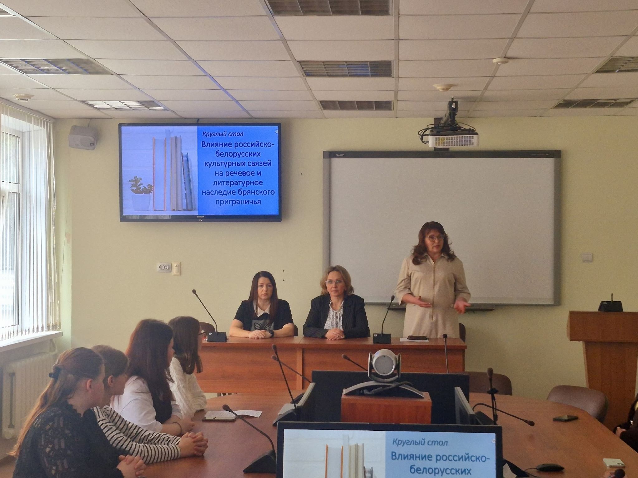 2 апреля 2026 года на филологическом факультете состоялся круглый стол «Влияние российско-белорусских культурных связей на речевое и литературное наследие брянского приграничья», посвященный Дню единения народов России и Беларуси.