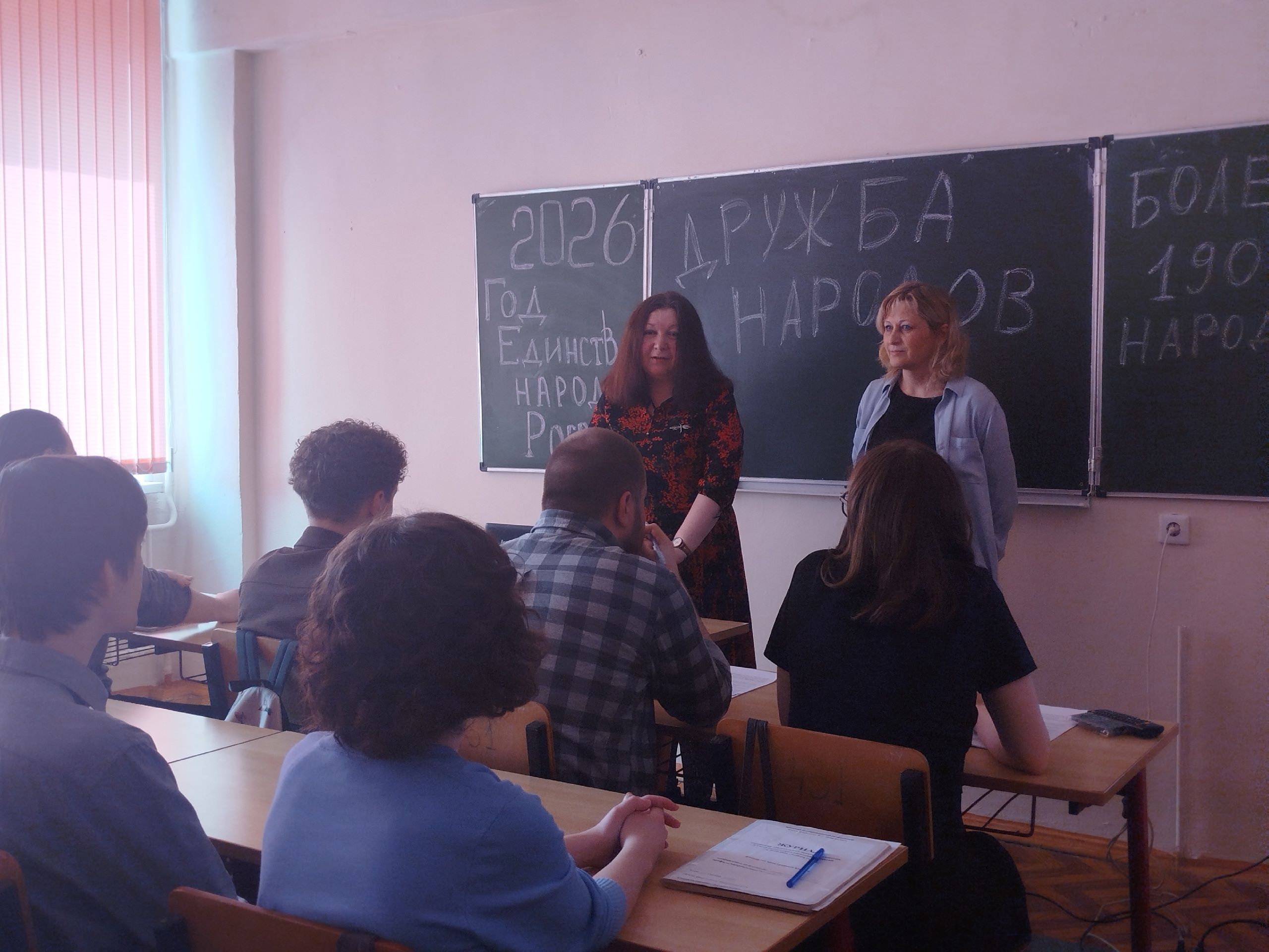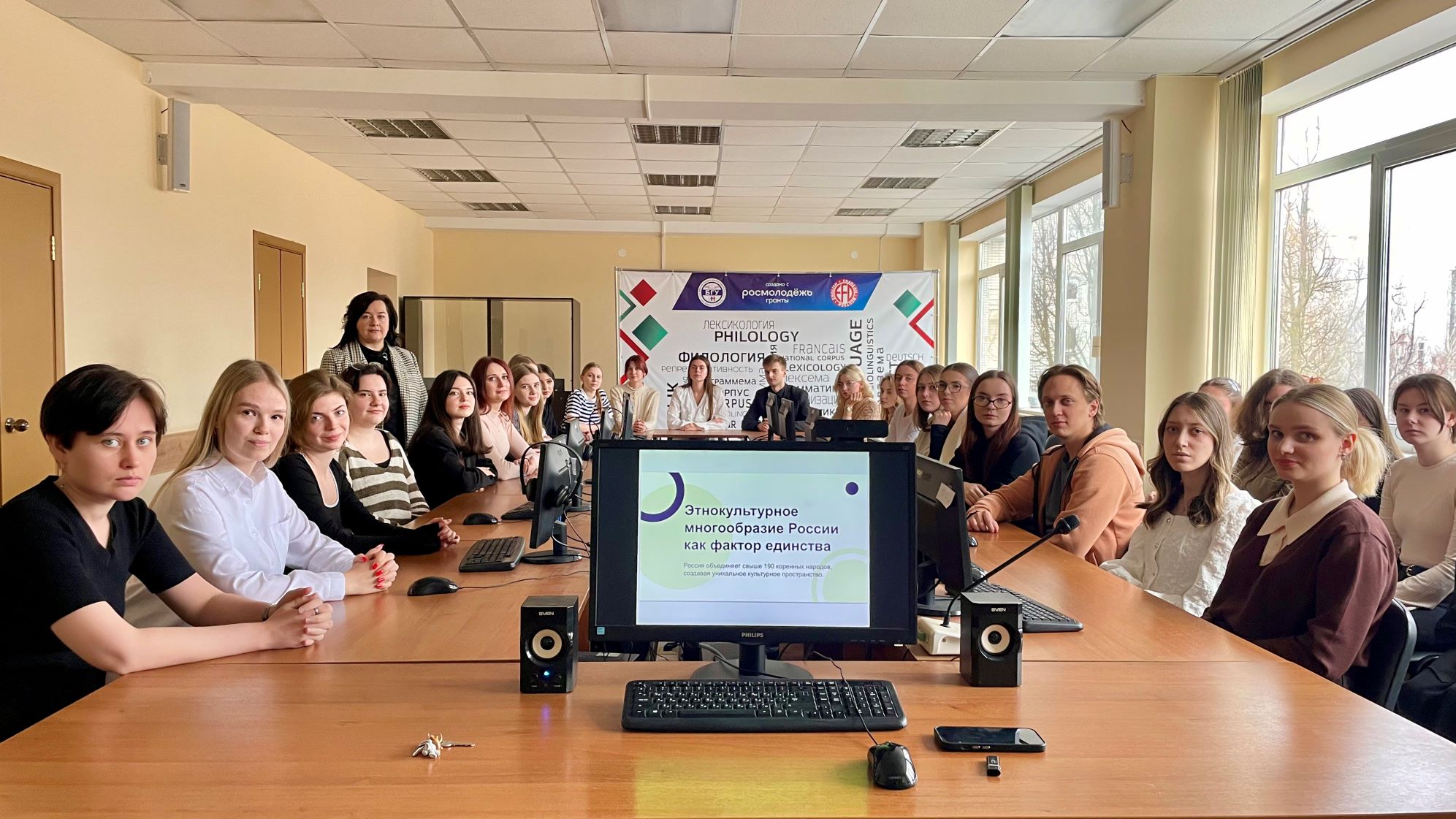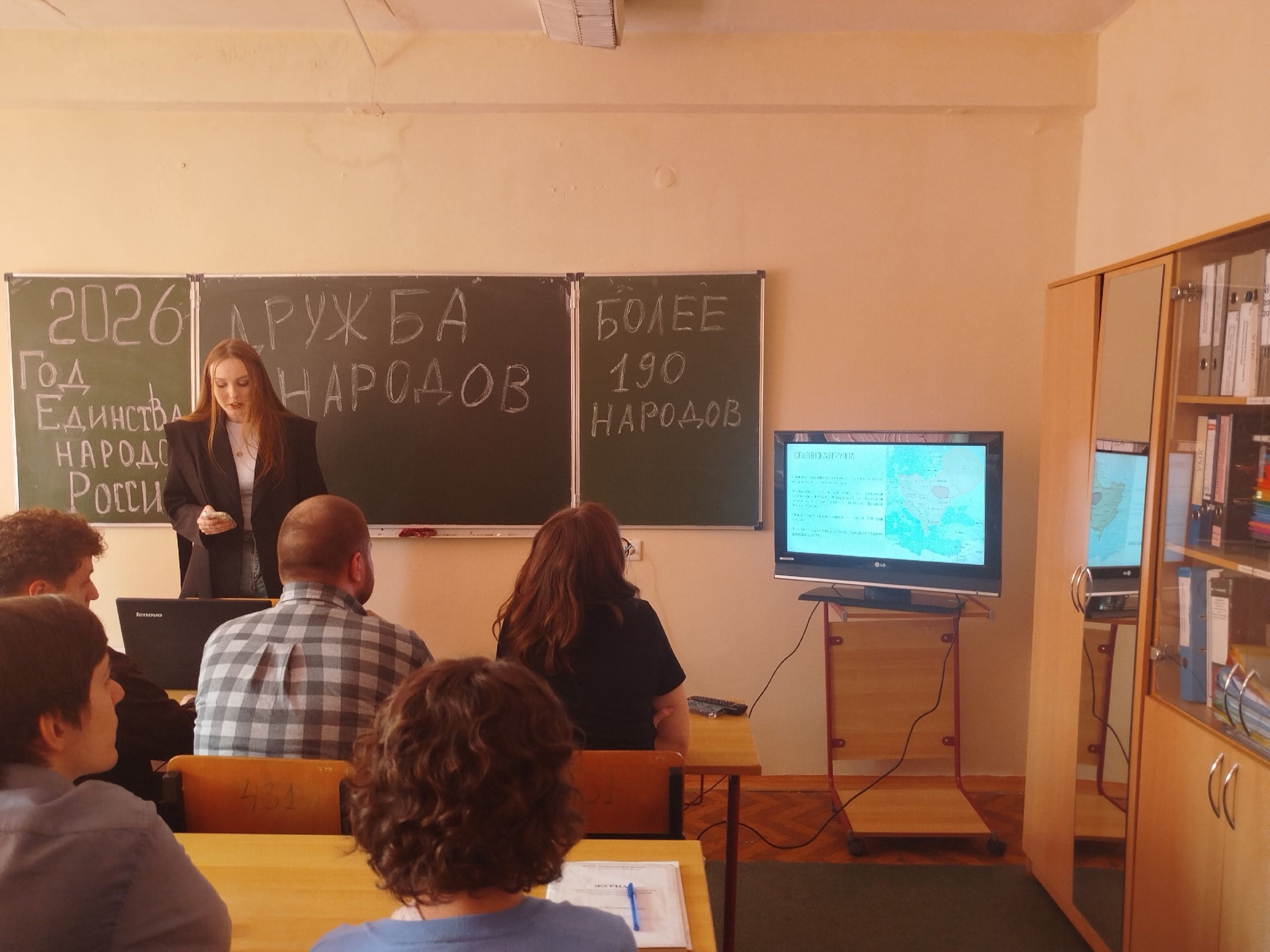 19 марта 2026 года студенты 303 группы вместе с преподавателем кафедры немецкого языка Циколенко Л.И. организовали и провели мероприятие в формате круглого стола «В единстве народов- сила России. Язык и традиции разных народов России».
