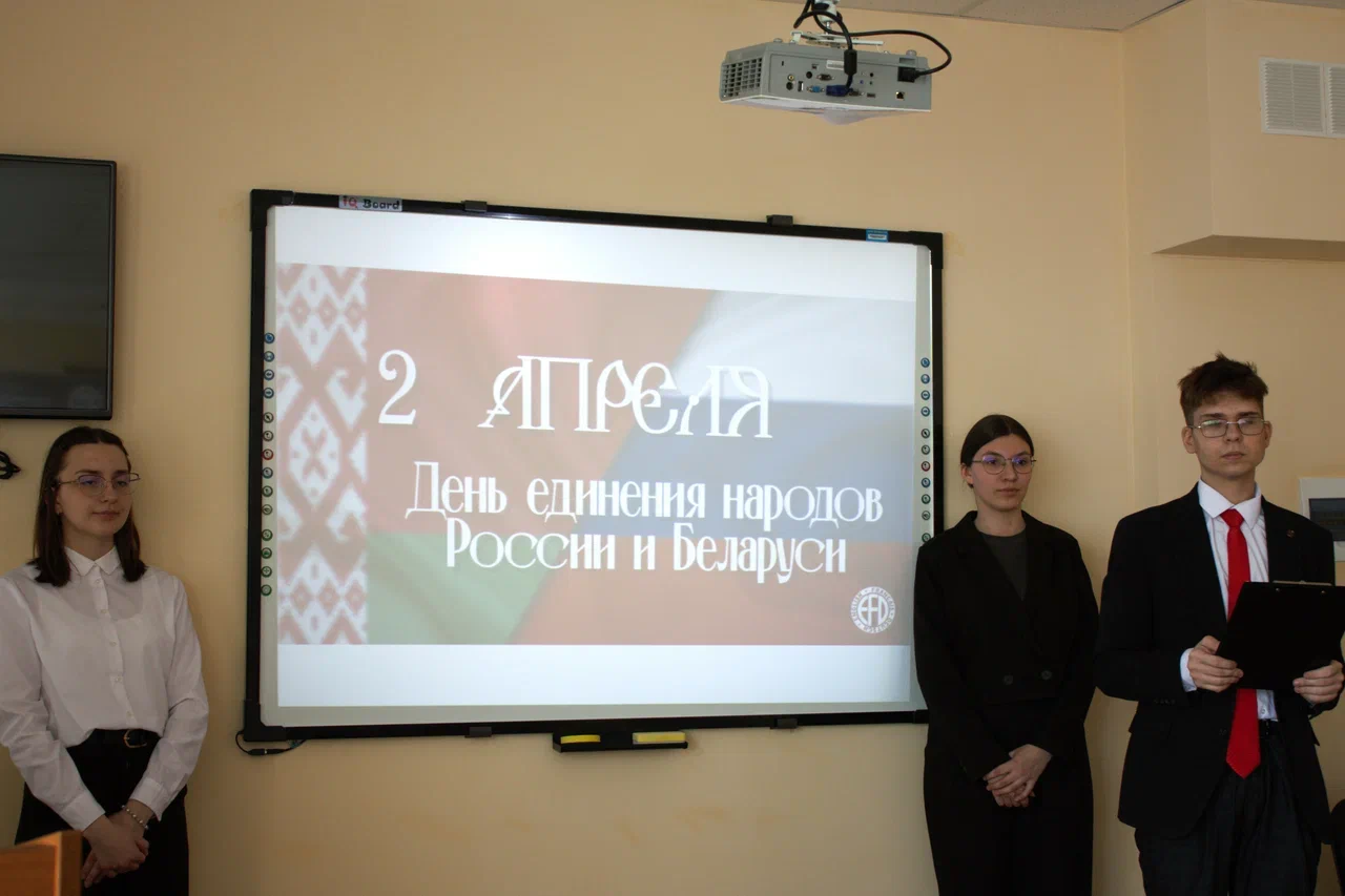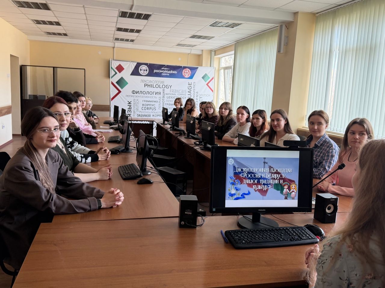 2 апреля 2026 года в День единения народов России и Белоруссии студенческий актив факультета иностранных языков, руководство факультета и заместитель института русской и романо-германской филологии Логутова О.Н. организовали дискуссионную площадку под названием «Россия и Белоруссия: диалог традиций и культур» для студентов факультета.