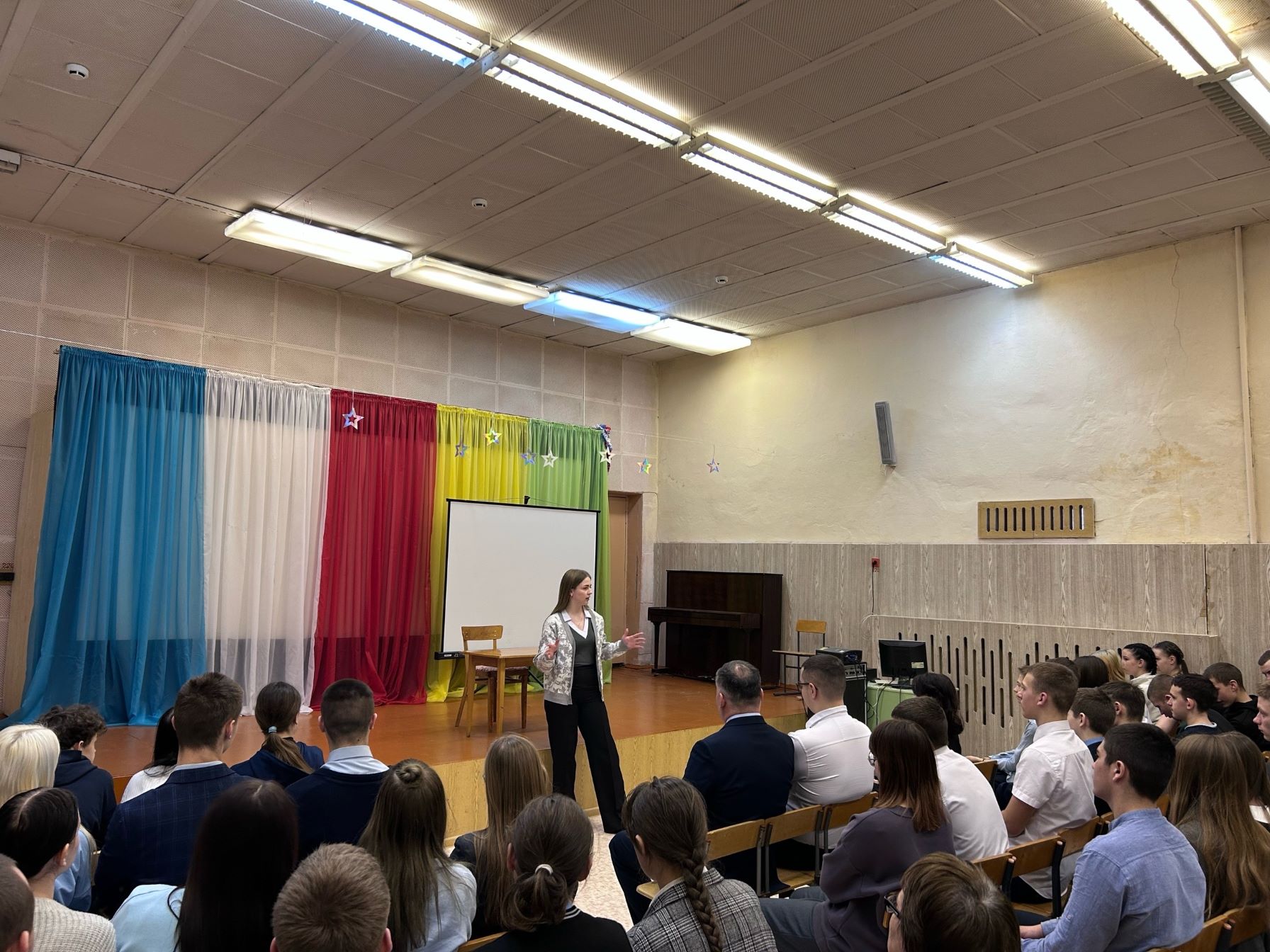 Привлечение студентов для участия во встрече со школьниками позволило быстрее наладить диалог с аудиторией, провести беседу в более неформальном ключе.