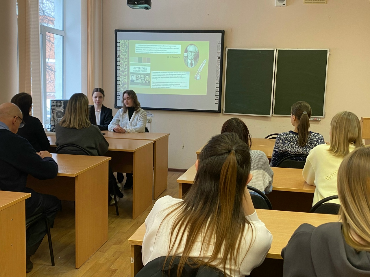17 марта 2026 года в соответствии с планом мероприятий, посвященных Году единства народов России, преподавателями кафедры дошкольного, начального и специального образования профессором Вороничевым О. Е. и доцентом Моспановой Н.Ю. совместно со студентами 3-го курса направления подготовки «Педагогическое образование» была проведена "Литературная гостиная".