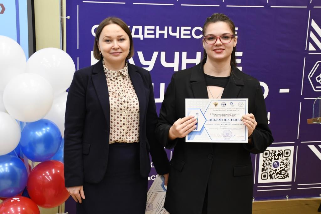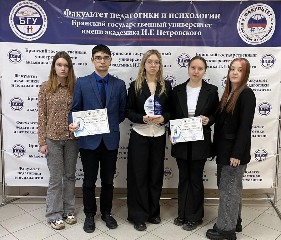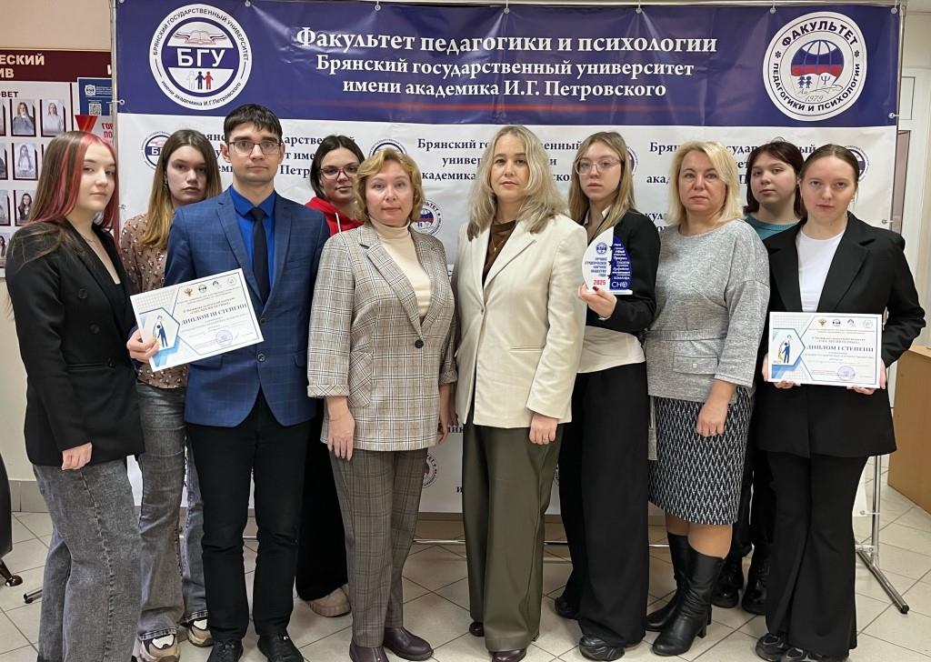 По итогам оценки результатов деятельности научных обществ факультетов в номинации «Лучшее студенческое научное общество» стала команда нашего факультета, которая была награждена дипломом 1-й степени и лауреатом. Так же команда студенческого научного общества факультета педагогики и психологии заняла 3-е место в номинации «Лучшая группа поддержки конкурсанта» и 3-е место в номинации «Лучший плакат в поддержку конкурсанта».