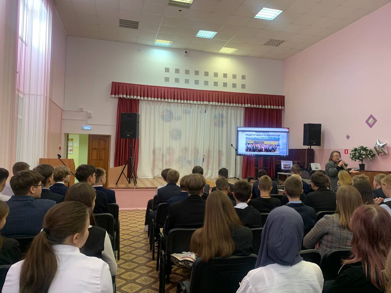 В рамках профориентационной работы преподаватели факультета педагогики и психологии провели цикл профориентационных занятий с учащимися 10-11 классов МБОУ СОШ № 64 г. Брянска.
