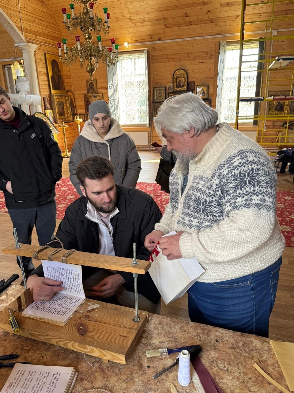 Студенты 1 курса профилей Русский язык, Литература и 5 курса профилей История, Обществознание вместе с преподавателями кафедры социально-экономических и гуманитарных дисциплин О.В. Белугиной и С.М. Пронченко стали участниками мастер-класса «Азы переплётного дела» в рамках проекта «Книжное слово – наследие предков», организованного Алексеем Беласом. Прошёл он в стенах Рождественско-Никольской церкви города Новозыбкова.