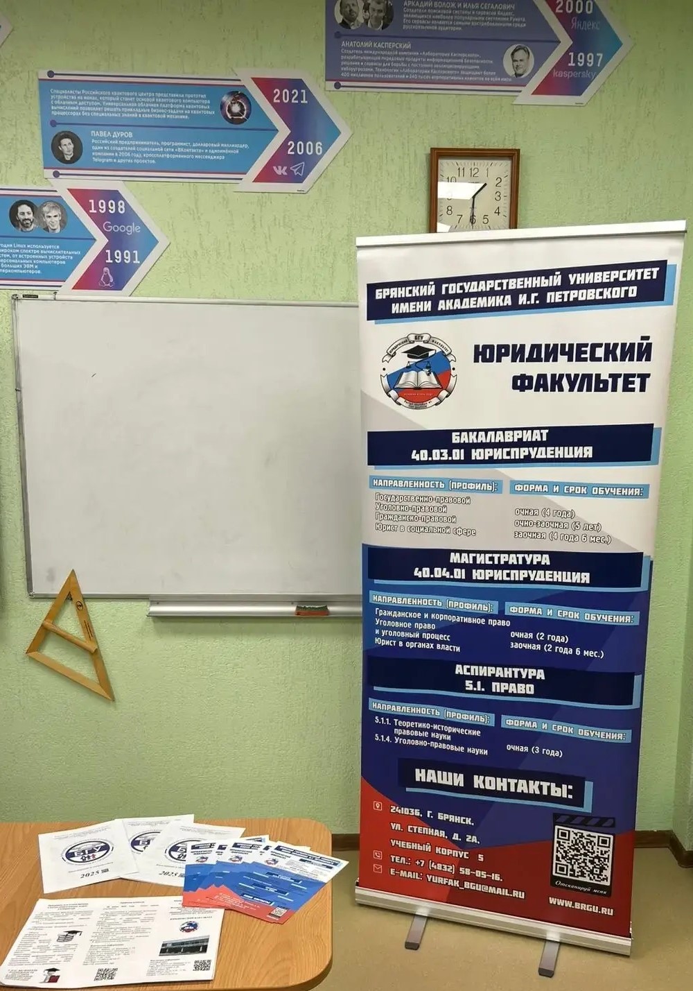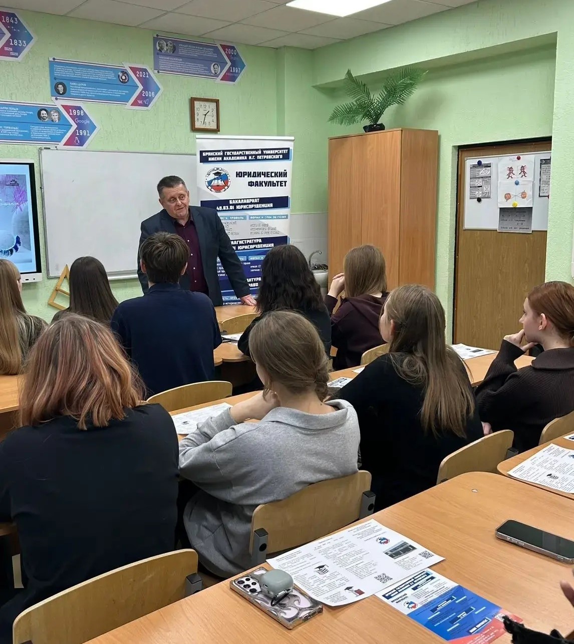В ходе мероприятия школьникам была предоставлена актуальная информация относительно предстоящей приемной компании 2026 года в БГУ им. академика И.Г. Петровского, а также подробно освещены вопросы поступления на юридический факультет.