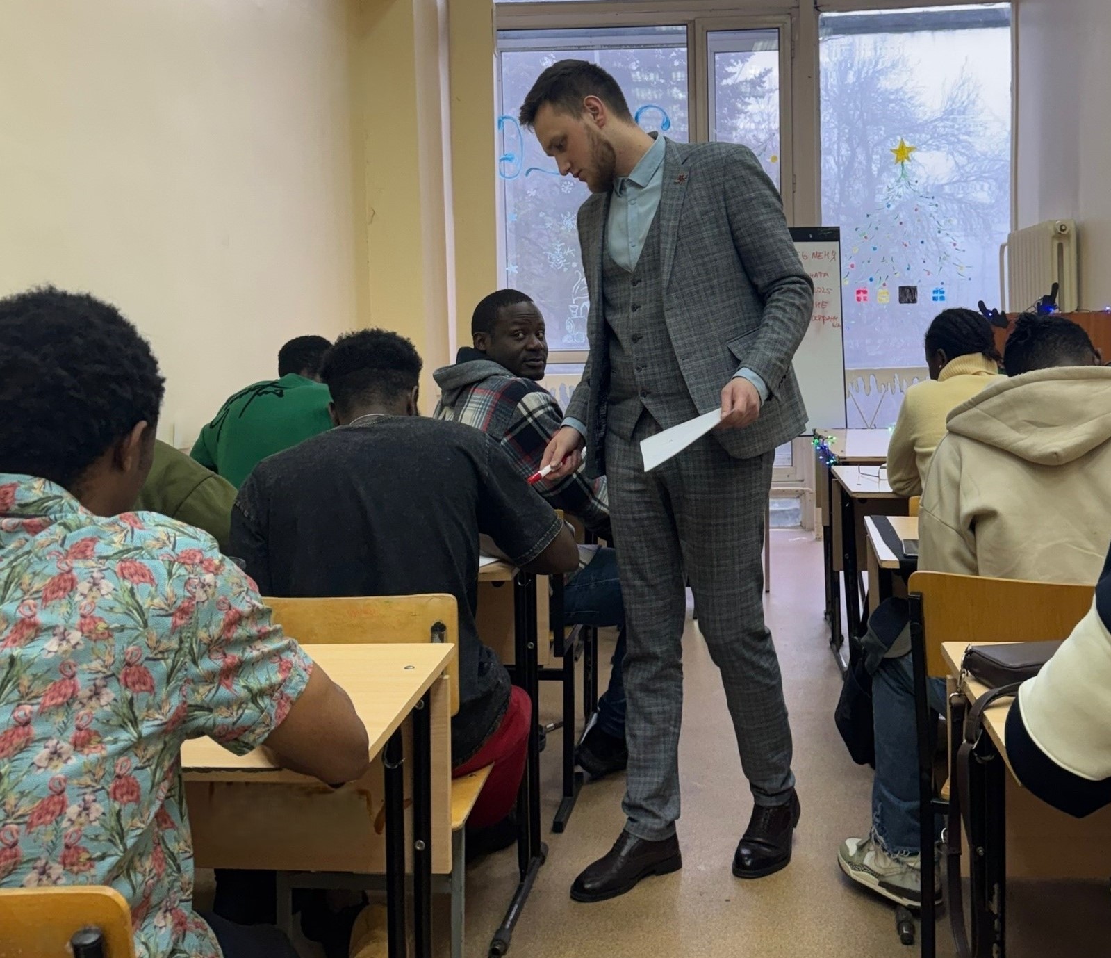 17 декабря заместитель декана по воспитательной, внеучебной работе и общим вопросам Столпник Д.В. провел очередное заседание интерклуба юридического факультета. Студенты - иностранцы собрались, чтобы обсудить важные вопросы перед новогодними праздниками и подвести итоги адаптации к студенческой жизни.