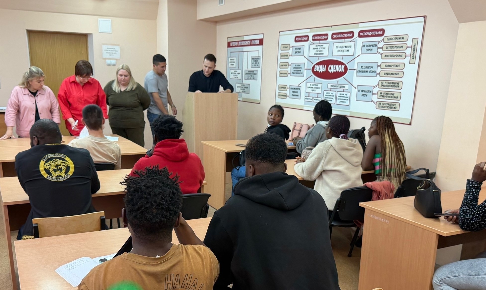 Уже несколько лет среди обучающихся юридического факультета значительное количество составляют студенты из государств Африки и Средней Азии. Для преодоления возможных трудностей, с которыми могут столкнуться иностранные студенты, факультетом периодически организуются и проводятся встречи с этой категорией студентов. На этих мероприятиях поднимаются вопросы, связанные с правовыми аспектами пребывания в Российской Федерации, учебным процессом, проживанием в общежитии.