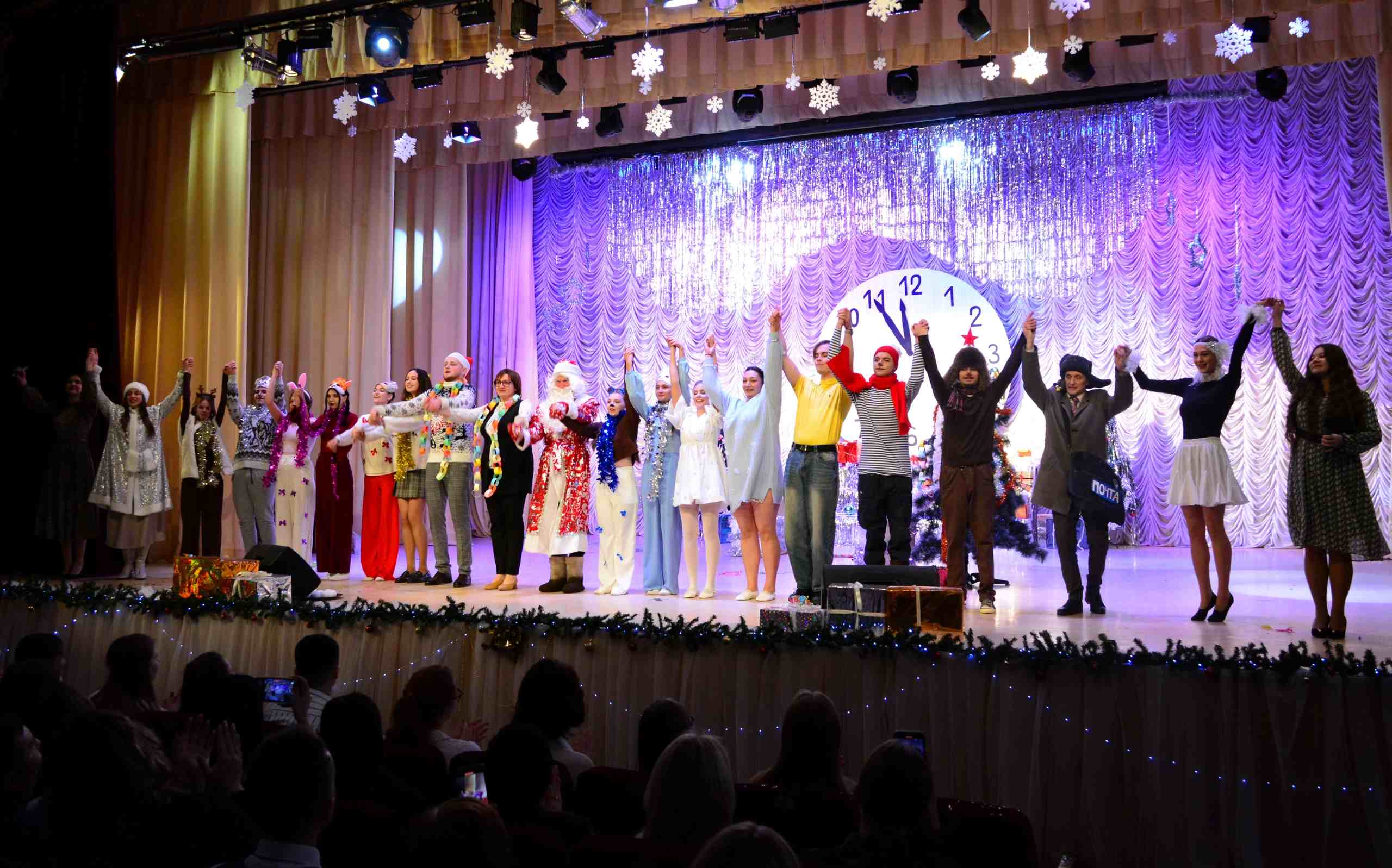 23 декабря актовый зал университета наполнился предпраздничным оживлением в рамках новогоднего концерта. Юридический факультет представил зрителям яркий творческий номер — музыкальную пантомиму на всеми любимую песню «Кабы не было зимы», превратив её в целую театральную зарисовку.
