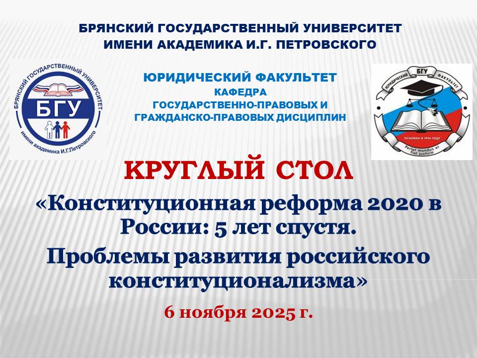 Приглашаем вас на Всероссийскую научно-практическую конференцию, которая состоится 20 ноября 2025 года в Брянском государственном университете имени академика И.Г. Петровского.