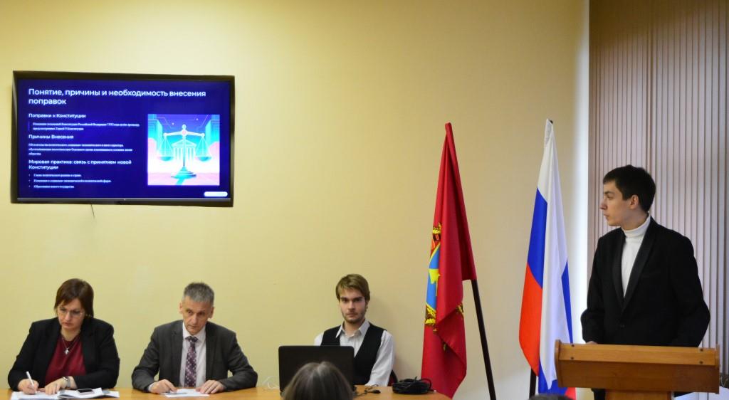 Участники круглого стола получили возможность ознакомиться и подробнее изучить причины и содержание Конституционной реформы 2020 года, проследить её хронологию; высказать свою точку зрения о форме правления в России и, что немаловажно, расширить свой правовой кругозор и опыт научных диспутов. Со своими докладами выступили: Старухин Э., Борисова Ю., Типоченков Р. и Лабуз Е.