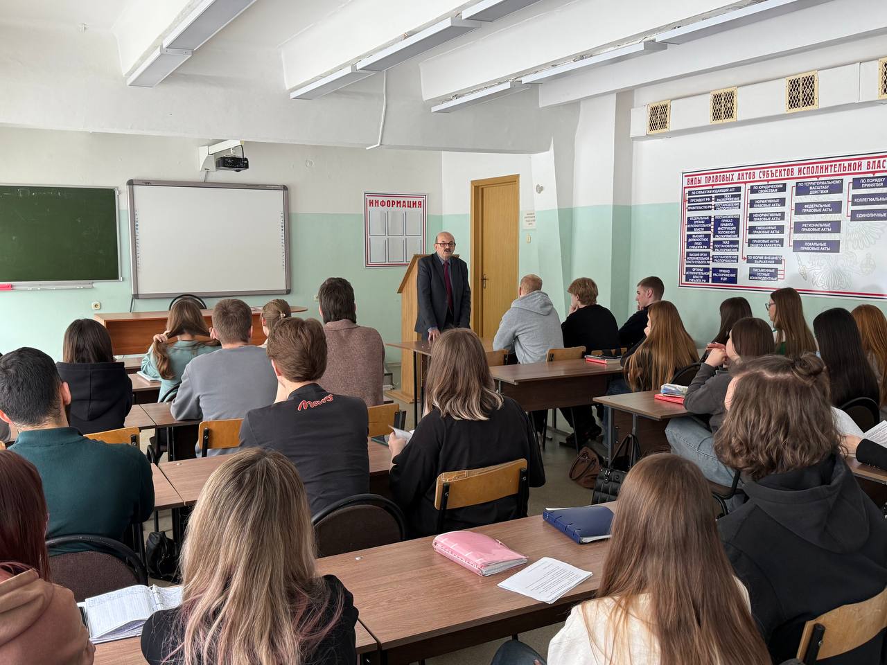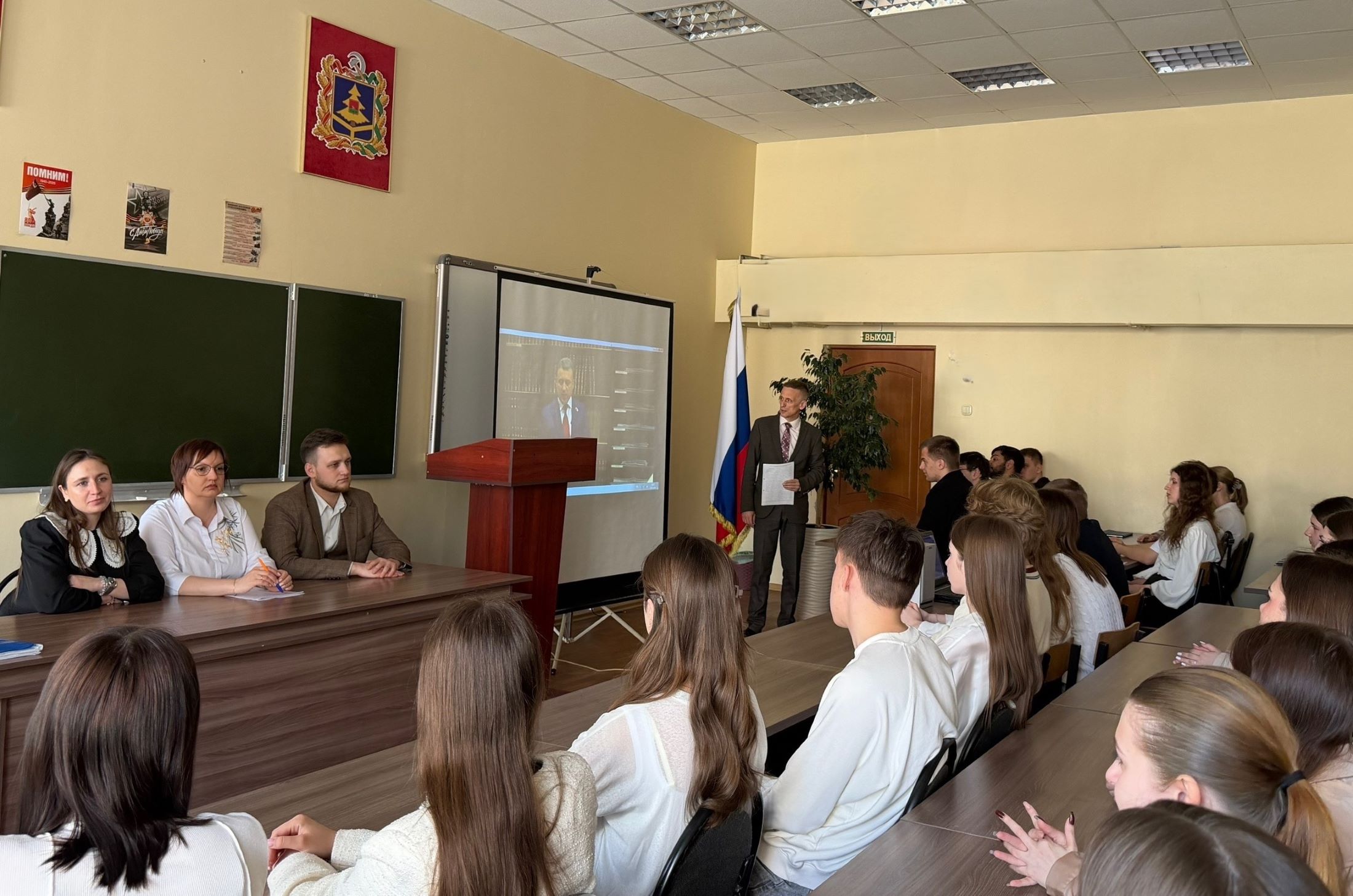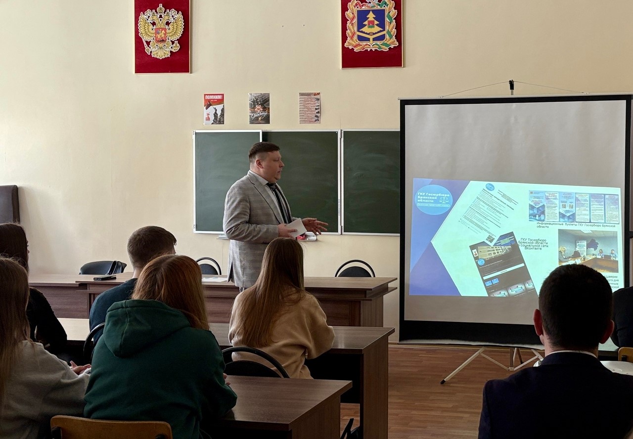 Первокурсники в беседе с начальником правового управления Брянской областной Думы В. И. Гуровым ознакомились с процессом принятия законов, узнали, как происходит обсуждение и голосование по законопроектам, какие этапы проходят документы на пути к утверждению. Студенты получили представление о работе законодательного органа за последние три десятилетия. За это время было принято более трех тысяч законов, свыше 10 тысяч постановлений и других нормативных актов, которые способствовали экономическому, социальному и духовному развитию региона.