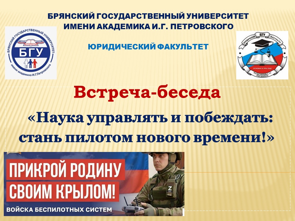 19 марта 2026 года на юридическом факультете состоялась встреча-беседа, посвященная недавно созданным войскам беспилотных систем. Мероприятие состоялось в рамках системной работы по развитию социально значимых качеств у молодёжи в сфере патриотизма, а также по формированию и укреплению активной гражданской позиции.