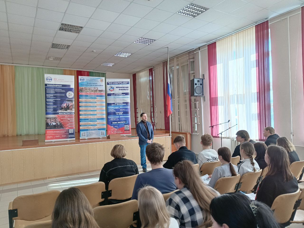 17 и 18 марта 2025 года на юридическом факультете Брянского государственного университета имени академика И.Г. Петровского под руководством декана Ткаченко Е.В., с участием зам. декана по воспитательной работе Кириченко Ж.В., преподавателей кафедры государственно-правовых и гражданско-правовых дисциплин: Иванина А.А., Родиной Т.Ю., Алексеева Н.В., кафедры уголовно-правовых дисциплин, теории государства и права: Герасенкова В.М., Маевского С.С., Дударева В.А. было организовано и проведено профориентационное мероприятие «Путь юриста». Гостями стали учащиеся 10 и 11 классов МБОУ «Средняя образовательная школа № 18 имени братьев Могилевцевых» г. Брянска.