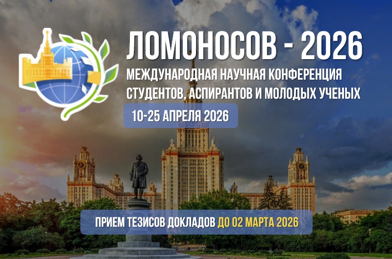 С 10 по 25 апреля 2026 года в Московском государственном университете имени М.В. Ломоносова проходит Международный научный молодежный форум «Ломоносов-2026», который являетсякрупнейшим на пространстве СНГ молодежным мультидисциплинарным научным форумом. В рамках форума проводится традиционная Международная научная конференция студентов, аспирантов и молодых ученых «Ломоносов». Ее основная цель - развитие творческой активности студентов, аспирантов и молодых ученых, привлечение их к решению актуальных задач современной науки, сохранение и развитие единого международного научно-образовательного пространства, установление контактов между будущими коллегами. К участию в конференции приглашаются студенты, аспиранты, соискатели и молодые ученые (кроме докторов наук) из любой страны мира в возрасте до 35 лет.