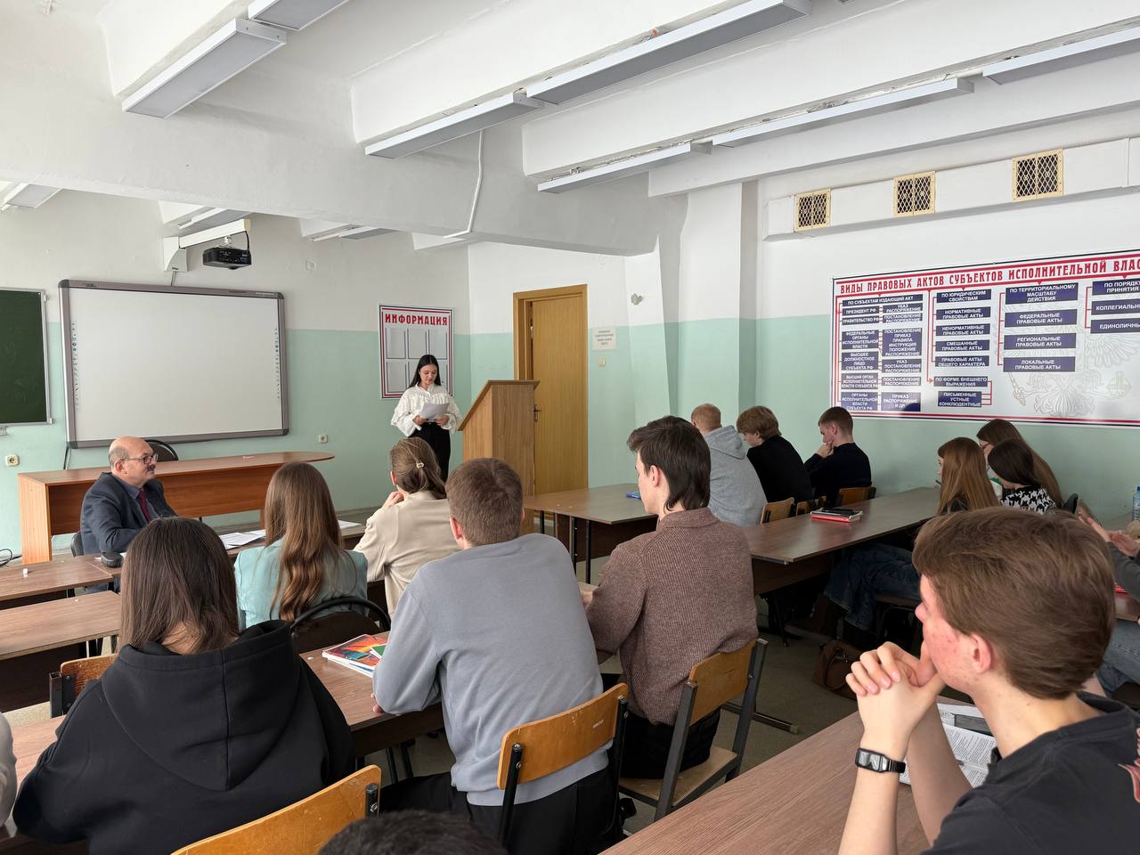 На мероприятии присутствовали декан юридического факультета Ткаченко Е.В., а также заместители декана Мальцева Я.В., Столпник Д.В. — это подчёркивает актуальность выбранной темы и особое значение подобных студенческих инициатив для всего факультета. Для первокурсников это особенно важно: понимание механизма создания НПА — это фундамент, без которого невозможно полноценно изучать ни конституционное, ни административное, ни любую другую отрасль права.