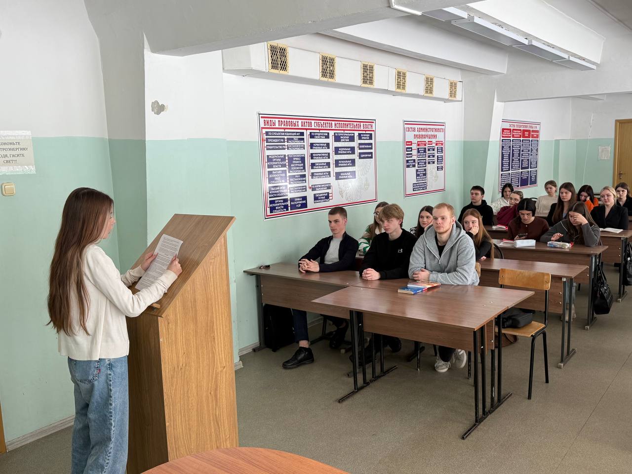 В рамках акции 14 марта 2025 года на юридическом факультете прошла открытая лекция, направленная на формирование правового сознания и законопослушного поведения, негативного отношения к незаконному потреблению наркотических средств и психотропных веществ, на пропаганду здорового образа жизни у молодежи.