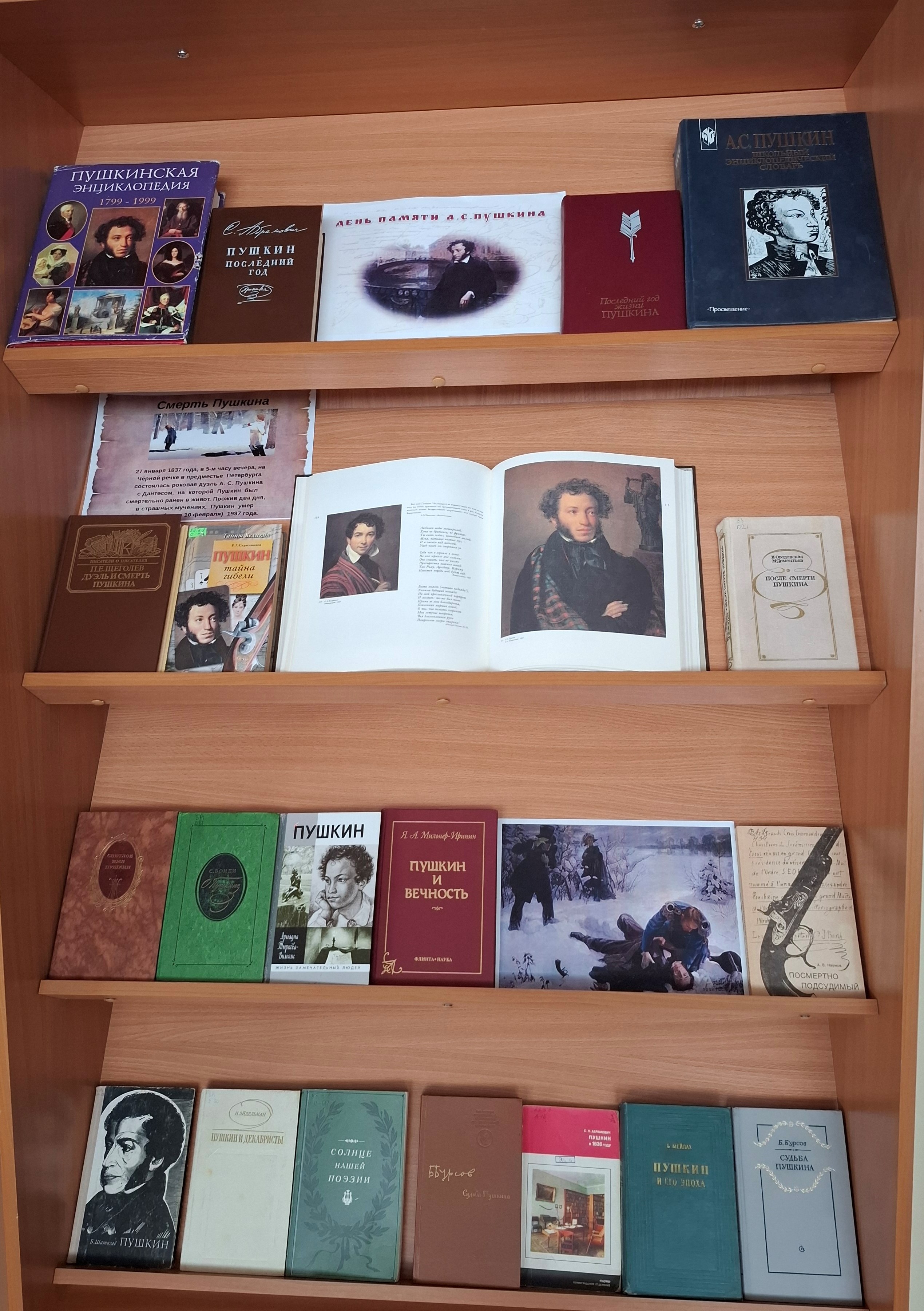 На выставке представлены издания, посвященные биографии и произведениям великого русского поэта, книги о жизни или особенностях творчества А.С. Пушкина, а также его художественные произведения.