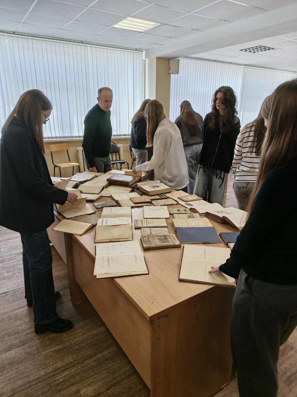 Студенты-биологи, изучающие дисциплину "Флора и растительность Брянской области", под руководством профессора кафедры биологии Ю.А. Семенищенкова смогли познакомиться с книгами, о которых раньше только слышали на лекциях по ботаническим дисциплинам, а также заглянули в книгохранилище, где увидели, как хранятся книги.